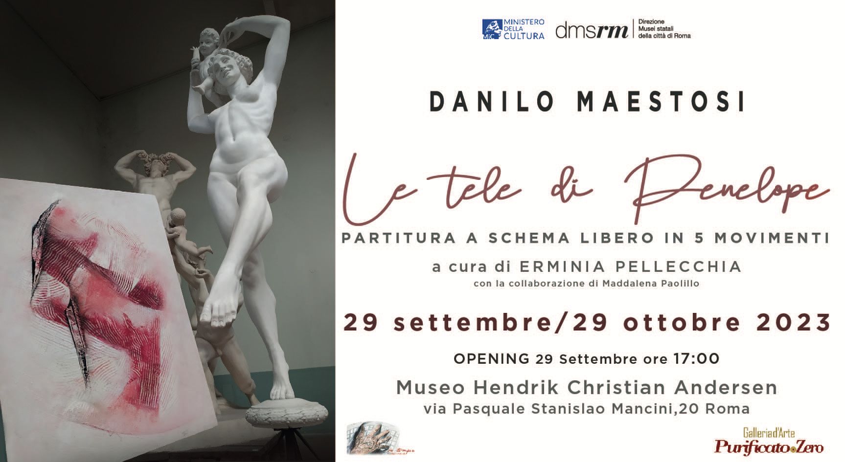 Si apre al pubblico il 29 settembre una personale di Danilo Maestosi, "Le tele di Penelope. Partitura a schema libero in 5 movimenti", al Museo Hendrik Christian Andersen, diretto da Maria Giuseppina di Monte. Casa-museo dello scultore norvegese-americano, vissuto a Roma dalla fine del XIX secolo fino alla morte, la palazzina fu fatta costruire da lui e decorata a partire dal 1922 in stile eclettico neo-rinascimentale. L'esposizione, curata da Erminia Pellecchia con la collaborazione di Maddalena Paolillo, resterà aperta al pubblico fino al 29 ottobre 2023. Pubblichiamo qui la presentazione di Nicola Fano dei lavori di Maestosi.