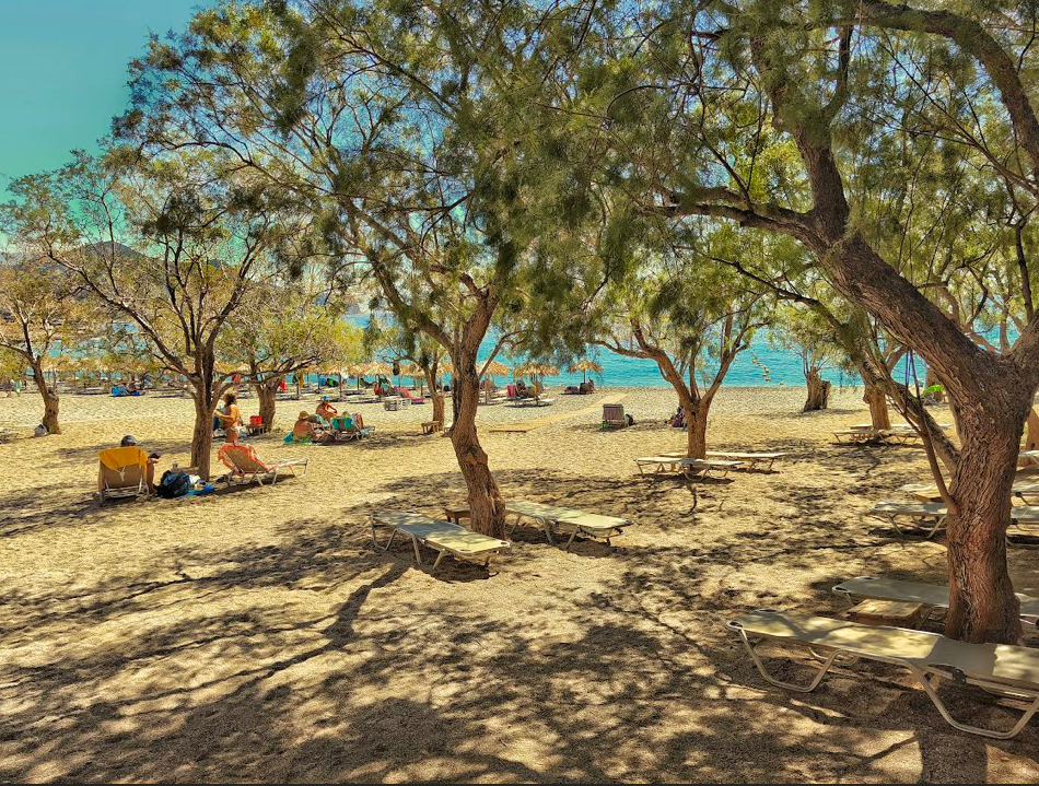 Parentesi su GAMMENO, a 4 km ad ovest, perché che la merita. Anche quando spira un allegro venticello con qualche sorprendente folatina, l'acqua rimane calma e cristallina, il fondo sabbioso crea iridescenze alla Pollock. Gammeno è anche bifronte; a ridosso dell’Ammos Beach bar, dall’altro lato della piccola lingua di terra, la spiaggetta diventa sassosa e il mare si fa blu intenso e profondo. Con Grammeno stai sereno, ovunque spiri il vento, un angolino riparato lo si trova. Attenzione però se si hanno piccoletti, perché l’acqua è subito profonda.