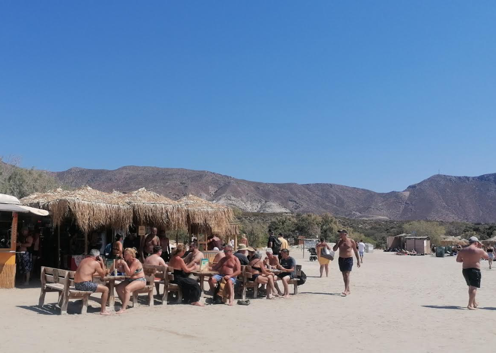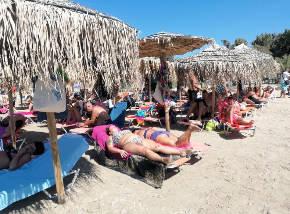 Sarà che i radi ombrelloni e i lettini su tre file erano ben distanziati, che in seconda e terza costavano €18 – per questa zona praticamente regalati - e che Angelos il ragazzo che li gestisce ha lo sguardo gentile, verde e limpido ed è pure belloccio, sarà che l'acqua è puro cristallo, con una trasparenza che solo in Sardegna e ai Caraibi, sebbene sia freschina, a detta non solo del beneamato, che vuole la broda come a Cuba, Baby Beach ce la siamo altamente goduta.