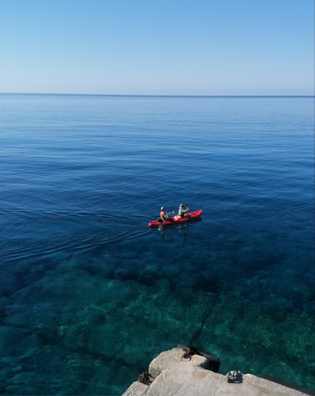 Alla fine nella Big Falasarna, non ci abbiamo messo piede, se non per un ultimo sguardo dall’alto, ma BABY BEACH, l’ultima insenatura in fondo alla baia, è decisamente più a nostra misura; un piccolo paradiso abbastanza protetto dal vento, che per 5 giorni ci ha graziati con una leggera e molto piacevole brezza. Carpe diem che domani non è detto, ci dicevamo ogni mattina, dopo aver dato un’occhiata a Windfinder (app indispensabile) perché a Creta, come già a Mars Salam in Egitto, meglio mettere agli atti che il vento raramente lo sfanghi. Ma, quando non supera i 20 km l’ora, può diventare persino un simpatico compagno. Tutto molto soggettivo, ovviamente.