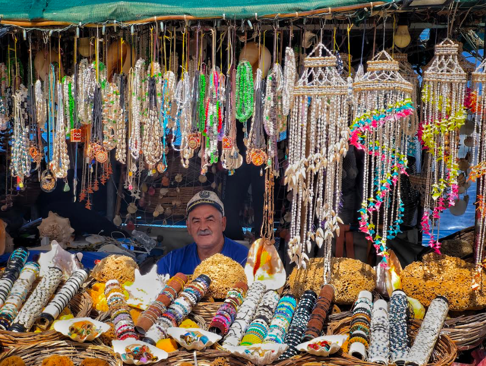 Vederli passare in fila indiana con piglio garibaldino, ignorando le tette al vento e i falli in mostra della congrega di salutisti nudisti stesi a prendere il sole nella porzione finale della spiaggia (che non ho fotografato, onde evitare di venire giustamente lapidata) mi ha lasciato basita e ammirata. Atmosfera post fricchettona, complice il negozietto di vestitini indiani, che a me fanno sempre tanta nostalgia e simpatia, perché mi ricordano quando c'ero andata overland nei lontanissimi anni '70.