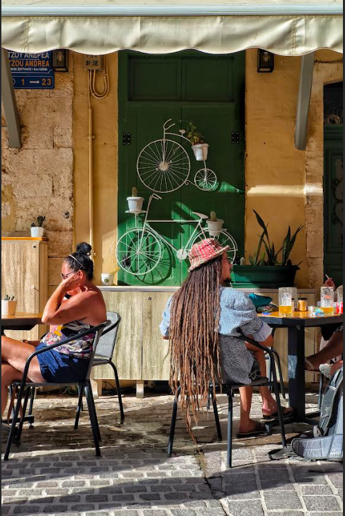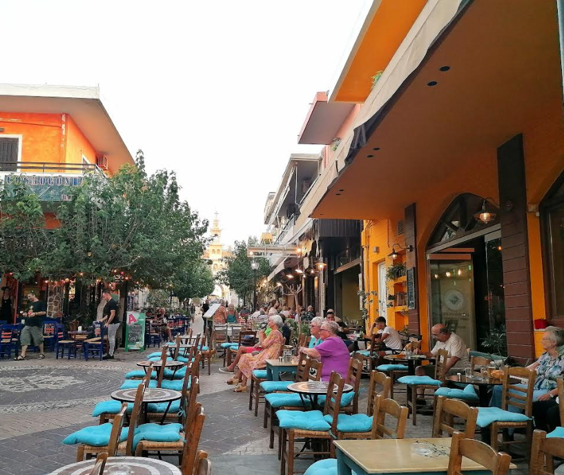 Senza contare i turisti e i crocieristi che sbarcano a frotte dalle meganavi attraccate nel limitrofo porto di Souda, anziani per lo più, accaldati e traballanti che procedono a rilento intasando le stradine del centro, che è un gioiellino invaso da negozietti di abbigliamento e di souvenir, carichi di merce, con prezzi più cari che altrove, ma con scelte più varie e ricercate che altrove. Quindi, così a prima vista l’avevo paragonata ad un girone dantesco, quello in cui si vedono i dannati in moto perenne, camminare in cerchio. E ancora una volta mi sono dovuta ricredere.