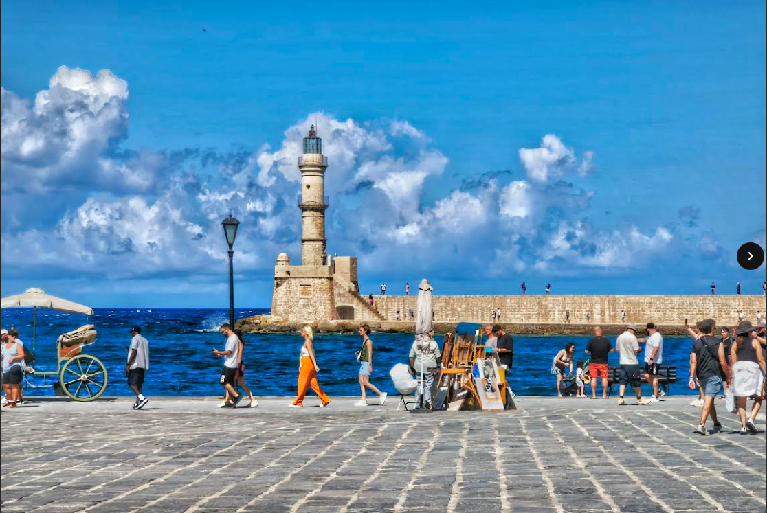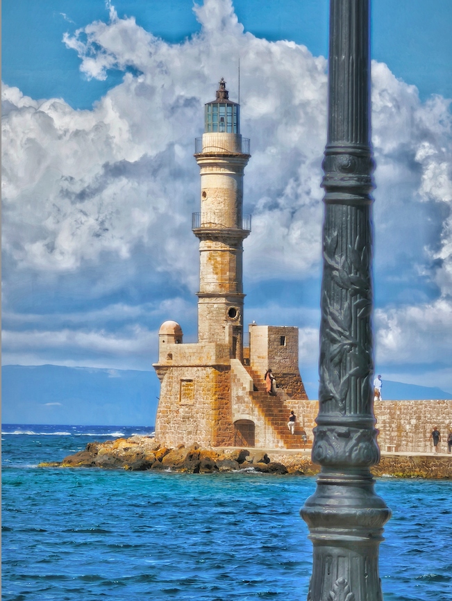 Meglio chiarire se no c’è chi penserà; eccola là, nemmeno Chania le va bene. E invece mi va bene, mi va moltissimo bene, è carinissima Chania, solo che anche a fine settembre eravamo sempre tanti. Troppi. Noi l’abbiamo presa con calma, l’abbiamo girata a piedi in lungo e in largo, fermandoci a riposare sulle panchine davanti al faro che fa da punto esclamativo ad una skyline di edifici bassi e pastellati, inebriati dal sole e dal vento, sorseggiando un succo di melograno appena spremuto, felici di esistere e di aver concluso la nostra vacanzina, accompagnati dalle note di Mai di Domenica, strimpellate dall’anziano suonatore di bouzuki.