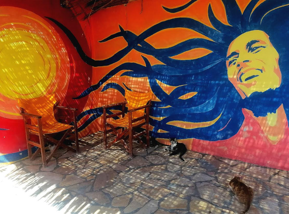 E poi c’è Orange Blue, il baretto sovrastante, che offre pranzetti veloci, un ottimo caffè frappé, del succo di arancia spremuto di fresco e ultima ma non da ultima, al bisogno, una margarita o una birretta gelata con la supervisione di Bob Marley, perciò a consuntivo, senza timore di smentite, vi dirò: questa spiaggetta merita.