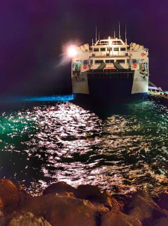Noi, ormai l’avrete capito, siamo dei tiratardi goderecci, per cui abbiamo scelto il traghetto. €35 a persona per un’andata e ritorno in giornata (volendo avremmo potuto pernottare) con destinazione il fotogenico porticciolo di Loutro.
