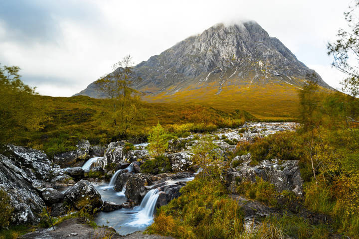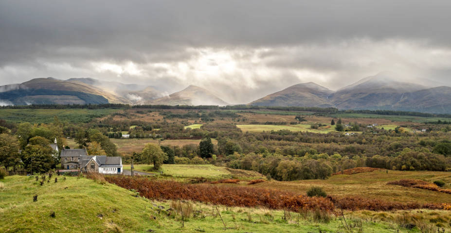Perché qui siamo nell’anticamera delle Highlands e stiamo per andarle a scoprire. Il panorama visto dal pullmino in viaggio verso Glencoe cambia non tanto nel colore, che è sempre verde con sfumature di verde e qualche chiazza più verde, ma nella forma dei rilievi, che da morbide colline si trasformano in montagne, nella silhouette tipica dell’immaginario dei bambini: qui i monti sono tutti triangolari. Cambia la misura della base, ma molto meno quella dell’altezza che non va oltre i 1.345 metri del Ben Nevis, la cima più alta delle Isole Britanniche, che si staglia nel cielo grigio a poca distanza dalla davvero graziosa città di Fort William. L’altro aspetto che colpisce è la quantità d’acqua che dirupa fragorosamente da centinaia di spaccature nella roccia - che segnano come rughe i pendii dei monti - e che poi a fondovalle si dispone a scorrere in fiumi placidi e anse tranquille, e piccoli laghi dalla superficie a specchio quando il vento si placa.