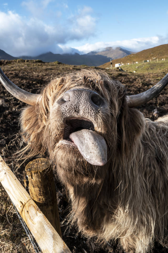 Noi per fotografare il castello dal punto di ripresa migliore, sulla sponda opposta del lago, scavalchiamo il cancelletto di un pascolo presidiato da una pastora che riscuote le royalty in caso di uso commerciale delle immagini del castello. Poi attraversiamo un acquitrino e arriviamo in un boschetto che termina proprio sulla riva lacustre: clic. Bella foto. Un momento... Che cos’è quell’obbrobrio sul pendio proprio dietro il Kilchurn Castle? Un traliccio dell’alta tensione, ben più alto della torre sgranocchiata del castello, dal quale si dipanano in file parallele i cavi elettrici diretti verso altri due giganti d’acciaio, ben visibili pure loro tra il verde del declivio, a qualche centinaio di metri l’uno dall’altro. Per fortuna, esiste Photoshop così i tralicci si possono rimuovere senza lasciare al buio gli abitanti dei dintorni. Usciamo dal pascolo scortati da un paio di cornutissime mucche a pelo lungo, tipiche di queste terre da cui prendono il nome.