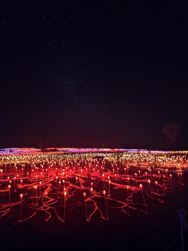 In questa logica di turismo alternativo, che non è consumo rapido ma ascolto lento, si inserisce anche la seconda serata dedicata all’escursione ai Field of Light, l’installazione artistica luminosa permanente situata nel deserto e uno dei più noti esempi di land art contemporanea in Australia.
