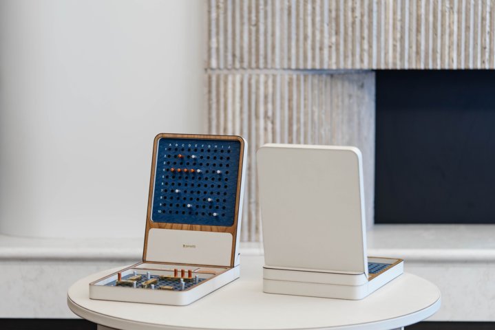 Sì passa poi ai giochi contemporanei, quelli che hanno decretato il risorgimento del gioco da tavolo a partire dagli anni Novanta, e che sono presentati in edizioni fuori scala, celebrative o da collezione. In questa sezione si trova “Contemporary Chess – A Game Without Thrones”, il progetto di Lorenzo Rimini che ripensa gli scacchi partendo da una semplice domanda: che cosa accadrebbe se eliminassimo re e regina dalla scacchiera? Rimini non cambia le regole, ma l’immagine: niente bianco e nero, le squadre si distinguono per forma (cerch io e quadrato) e i pezzi non rappresentano figure sociali o religiose, ma la loro libertà di movimento. La geometria diventa il linguaggio del gioco e il re, reinterpretato come pezzo fragile, rivela come i sistemi visivi influenzino il nostro modo di pensare, il potere e le gerarchie. Non poteva naturalmente mancare l’intelligenza artificiale. A conclusione del percorso viene indagato il suo impatto sul game design: quale sarà il futuro di questo lavoro artigianale? Prova a descriverlo “memorIA”, un gioco artistico sviluppato con l’uso dell’AI da Studiolabo e Silvia Badalotti, fotografa, prompt designer ed esperta d’immagine, per interrogarsi sulle prossime applicazioni in ambito artistico-creativo.