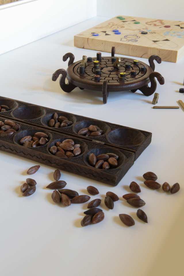 Lungo il percorso della mostra viene rappresentata l’evoluzione del gioco da tavolo, dagli albori ai progetti contemporanei, attraverso riproduzioni fedeli di giochi antichi, versioni giganti e pezzi in tiratura limitata o da collezione. Si comincia da trenta giochi antichi selezionati tra quelli di tutto il mondo: dal Gioco reale di Ur della Mesopotamia al Go praticato in Cina già dal IV secolo a.C., dagli scacchi al domino, senza ovviamente dimenticare carte e tombola. Si passa poi ai grandi titoli del Novecento come Cluedo, Forza 4, Monopoli e naturalmente RisiKo!, proposto anche in una versione gigante da 90 metri quadrati con cui è possibile giocare. Ci sono poi alcuni “gioielli”, interpretazioni firmate da designer e brand: il tavolo da Carrom di Vismara Design, gli Scacchi in acciaio disegnati dall’architetto Gianfranco Frattini, il tappeto da Backgammon dell’architetta e artista Valeria Molinari, la Battaglia navale di legno e pelle prodotta da Pinetti o il Gioco dell’oca di Pineider.
