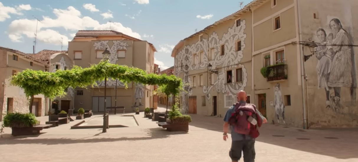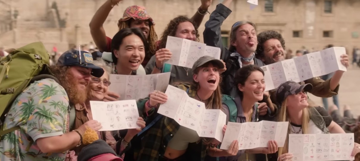 In “Buen Camino” l’effetto comico è cercato e talvolta trovato nell’attrito fra il comune senso del pudore e il tamarro opulento, uno sgangherato Candido della ricchezza esagerata, preoccupato che la figlia non apprezzi le carte di credito Gold, annichilito quando Cristal (l’ha chiamata così in onore dello champagne preferito) amoreggia con una ragazza. Prima riluttante a marciare con gente che vengono da un altro pianeta culturale e umano, poi sempre più padre premuroso e partecipe.
