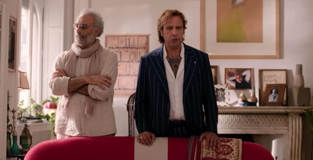 Anche in “Buen Camino” Checco all’inizio è un perdente però sui generis, multi-multi milionario in virtù del lavoro di papà, creatore di un impero del mobile ma poverello d’affetti veri e aridamente calibrato sull’iperconsumo ostentativo, le ville e la burrosa fidanzatuccia: “Anche mia moglie era modella, ma questa è un nuovo modello”. Giusto mentre Checco sta limando nella magione in Sardegna i preparativi per la festa dei cinquant’anni, faraonica nel senso vero del termine, con piramide megalomaniaca (si avvertono echi sparsi del cavalier Silvio e del suo vulcano), la figlia Cristal (una fresca Letizia Arnò) si allontana dalla casa in cui vive con la madre Martina Restelli (Martina Colombari), ex moglie dell’asino d’oro.