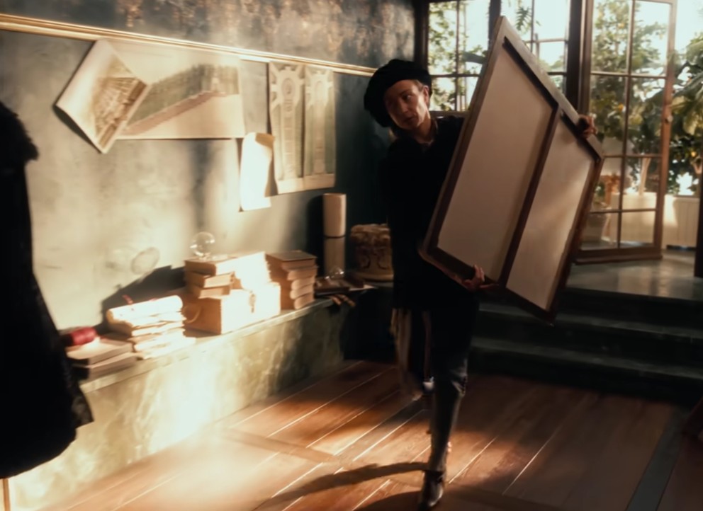 Dopo aver preparato la tela in nero per poter poi far emergere in modo adeguato la luminosità dei colori, la pittrice ricerca con meticolosa precisione la giusta luce per far risaltare il ritratto, mentre Leibniz usa gli stratagemmi della ragione e del dubbio per manifestare le sue convinzioni filosofiche. L’improvvisa morte della regina spinge l’artista a distruggere l’opera quasi compiuta per sostituirla con un quadro di dimensioni minori ma illuminato dalla sua convinzione secondo cui ciò che non si sa si può comunque dipingere.