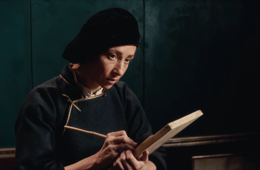 L’incarico viene quindi assegnato ad Aaltje Van De Merr che, sotto mentite spoglie maschili, è una pittrice fiamminga emergente di originale sensibilità. Durante la laboriosa lavorazione del ritratto, tra la donna e Leibniz si viene a stabilire una particolare alchimia d’intenti che porta entrambi a discutere e a dissertare intorno all’essenza dell’arte, al ruolo della pittura e ai valori più pregnanti dell’esistenza stessa. Nell’ambiente di un angusto studiolo seminterrato, l’artista e l’uomo di sapere intraprendono un viaggio a 360° intorno ai contenuti del sapere e della conoscenza.