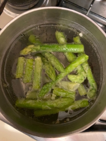Scottate per dieci minuti gli asparagi in acqua bollente e salata,