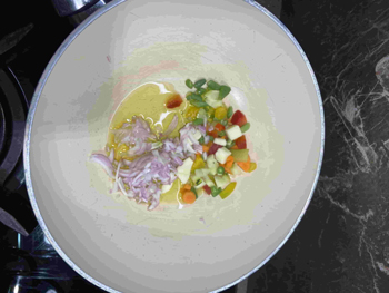 Preparate un soffritto rosolando le verdure miste con la cipolla