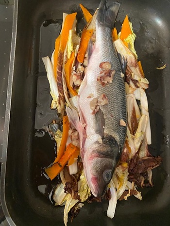 - appoggiate il branzino sulle verdure che userete anche per