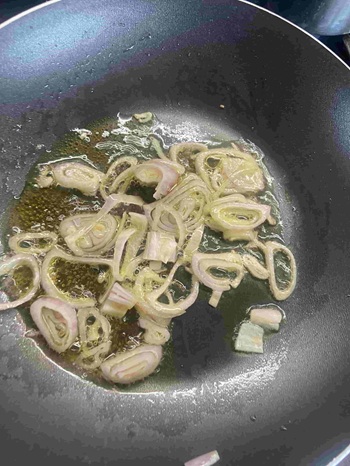 Affettate sottilmente lo scalogno facendolo poi rosolare