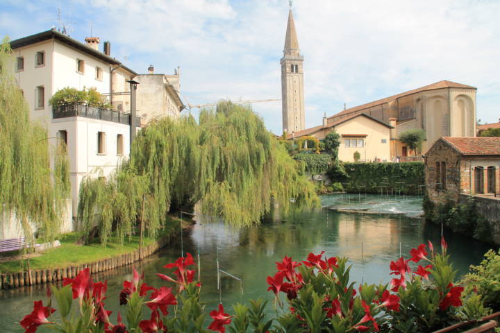 In auto da ovest si entra in Friuli nei pressi di Sacile. In quella che è elogiata come la “piccola Venezia” oppure come “giardino della Serenissima” si può seguire il corso tortuoso del Livenza, tra ponti e sottoportici a filo d’acqua, giusto per verificare quello che le guide turistiche propongono. Una breve passeggiata porta a scoprire piacevolmente i portici di piazza del Popolo e la Loggia comunale.