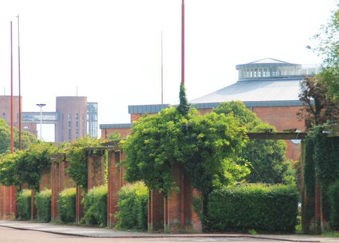 Il parco che si colloca alle spalle del complesso edilizio ricorda, per solitaria serenità, i “beghinaggi” fiamminghi.