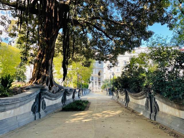 Il Giardino Romantico, un luogo molto caro alla cittadinanza e parte integrante del “sistema” museale e architettonico composto da Palazzo Reale, Biblioteca Nazionale e Teatro San Carlo, ha un’estensione di oltre 14mila metri quadri, che nella sua parte più esterna presenta un bell’affaccio su Castelnuovo e il Vesuvio.