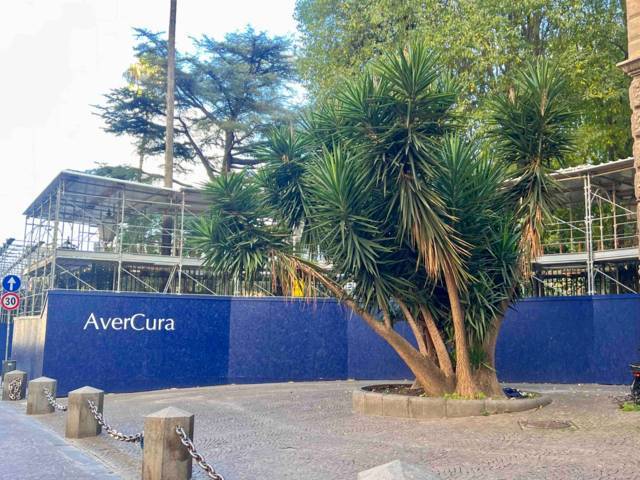 Mentre i lavori del giardino, caratterizzato da aiuole sinuose, sono ormai in fase di ultimazione, è stato recentemente avviato un ulteriore cantiere, relativo al restauro della cancellata monumentale che circonda il giardino lungo via San Carlo. Sui teli di cantiere è riportata la scritta "AverCura", senza logo o immagine, solo un'esortazione al rispetto e alla cura dei nostri beni culturali.