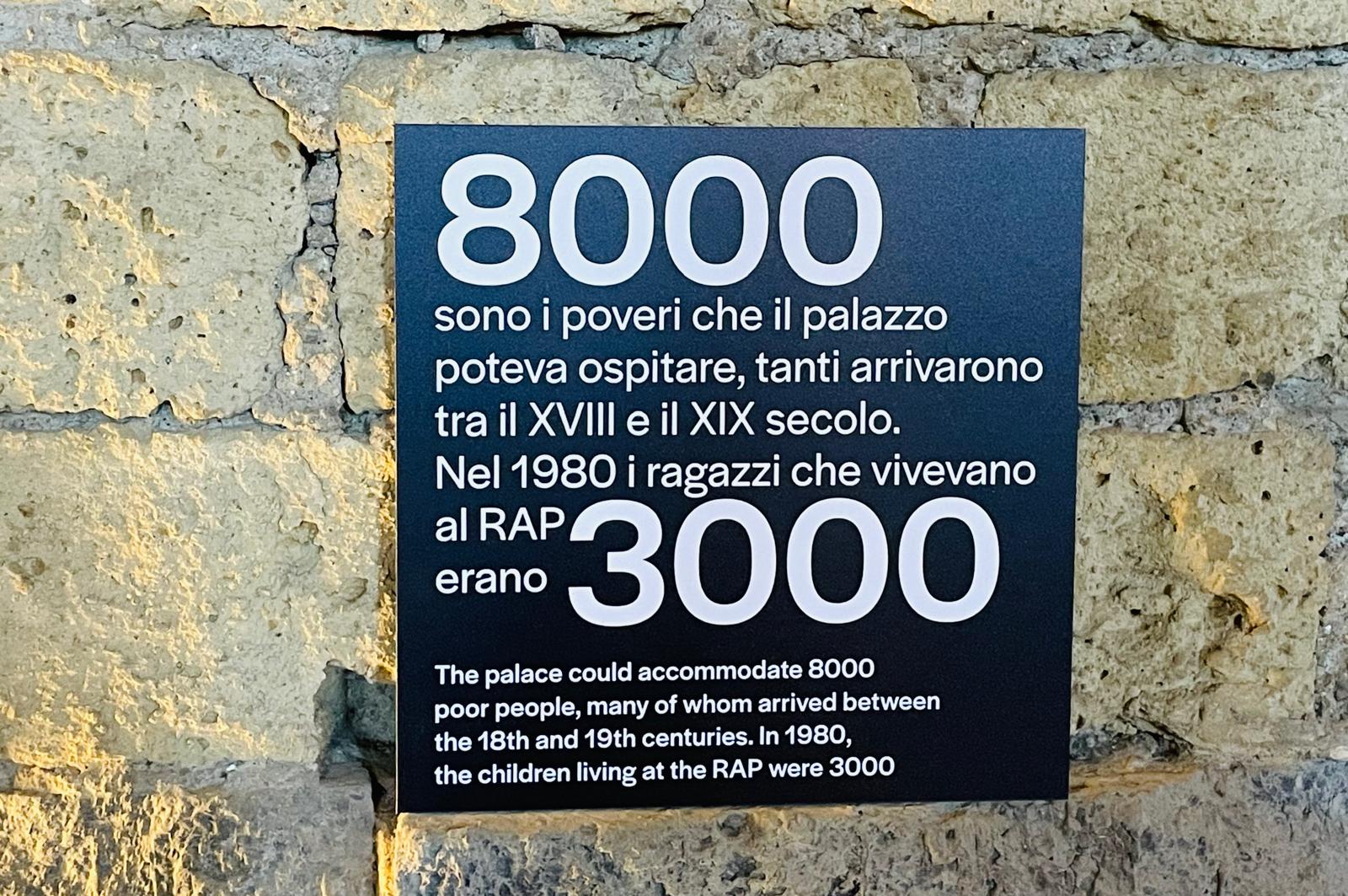 La lunga teoria di oggetti accostati ai muri o accumulati in ordinati quadrati sono le tracce materiali di un’umanità che il percorso espositivo rilegge in chiave poetica e civile, sempre ricordando che dal 1781 quelle bambine e quei bambini impararono mestieri e furono educati "al fare", uscendo da questo luogo formati per essere calzolai, bandisti, scrivani, sarte, intagliatrici, ricamatrici e molto altro ancora.