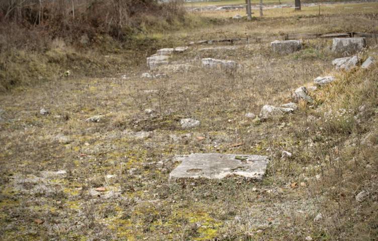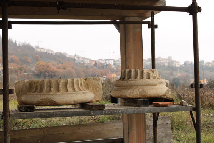 Durante gli scavi furono recuperati frammenti di decorazione in calcare della zona del palcoscenico.