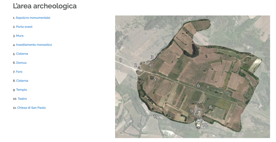 L’area archeologica rappresenta un racconto storico stratificato che inizia dal popolo italico dei Vestini per continuare con l’occupazione romana e fino al Medioevo: nel 1600, la città era ancora abitata.