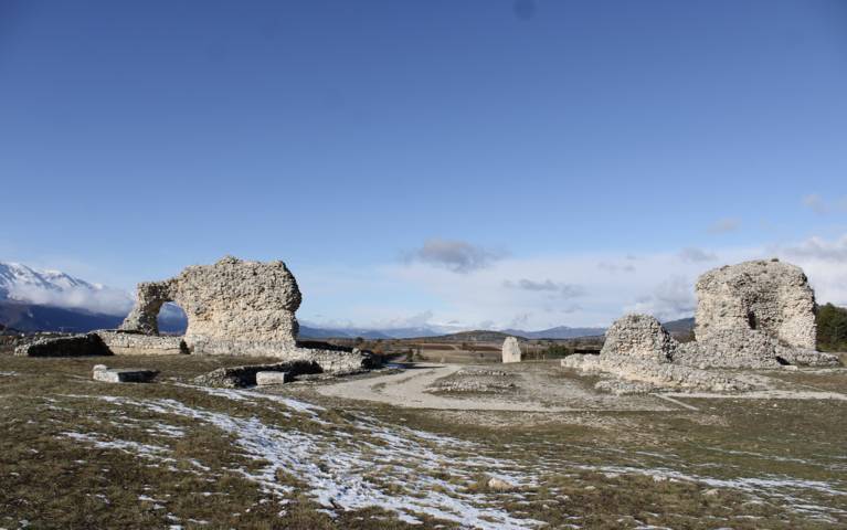 Il sito archeologico di Peltuinum si trova in provincia de L’Aquila, a scarsi trenta chilometri a est della città, tra i Comuni di Prata D’Ansidonia e San Pio delle Camere. È un’area dimenticata che risorge in estate, come spazio eventi con il Festival Paesaggi Sonori, la rassegna musicale che da un decennio si svolge sulle montagne abruzzesi. È di una bellezza tale che in altri paesi ne avrebbero fatto una notevole campagna di marketing. Peltuinum, inserito tra la valle dell’Aterno e quella del Tirino, è una scenografia naturale tra le montagne: quelle del Velino-Sirente a ovest e della Majella a est, che fanno da quinte, e sullo sfondo, a nord, il Gran Sasso. Si tratta di un antico insediamento situato in posizione strategica, per sussistenza e traffici commerciali, vicino ai grandi Parchi abruzzesi.
