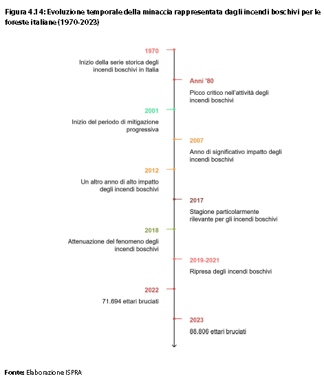 Sul versante climatico, il 2024 è stato, in Italia, l’anno più caldo dal lontano 1961. I nostri ghiacciai alpini continuano a perdere massa a un ritmo sostenuto e l’innalzamento del livello del mare, pur di pochi millimetri l’anno, è continuo. Continua anche, sebbene con un andamento variabile di anno in anno, la distruzione del territorio e degli habitat ambientali dovuta agli incendi boschivi: a partire dal 2001 si è registrata una progressiva mitigazione, interrotta da tre anni di maggiore impatto: il 2007, il 2012 e il 2017. Successivamente, il 2018 ha segnato un’attenuazione del fenomeno, che è però tornato a crescere dal 2019 fino al 2021, anno di picco in cui, nel nostro paese, sono stati percorsi dal fuoco 151.964 ettari. Nel 2022, gli ettari bruciati sono stati 71.694, mentre nel 2023 ammontano a 88.806. Al 2024, in Basilicata, Calabria, Campania, Friuli-Venezia Giulia, Lazio, Marche, Molise, Puglia e Sardegna il valore di superficie forestale percorsa da incendio supera la media nazionale del periodo considerato.