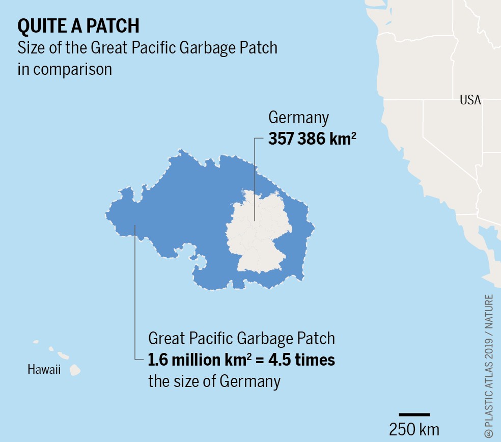 Studi recenti hanno verificato che quasi la metà (46% circa) degli scarti che compongono il Garbage Patch sono reti e attrezzature da pesca, mentre per il resto è formato da metalli leggeri, plastica proveniente dalle nostre case e microplastiche. I dati raccolti in Italia concordano ed anzi accentuano il ruolo dell’attività di pesca: secondo l’ISPRA ben l’86,5% dei rifiuti trovati in ambiente marino deriva da tale attività.